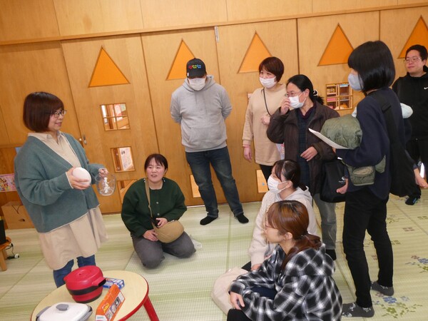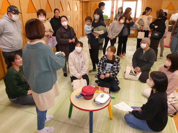 27日(木)は未満児のミニ講座&給食参観。ミニ講座は時短家事コーディネーターの藤田ゆうみん氏をお招きし行いました。毎日の家事に役立つ“時短術”を教えて頂きました。その後はゆうみん氏をまじえて和気あいあいと子育て&家事についての座談会。参加者みんなが笑顔になる時間となりました。給食参観では園と家庭での喫食状況を話し合うことができました。