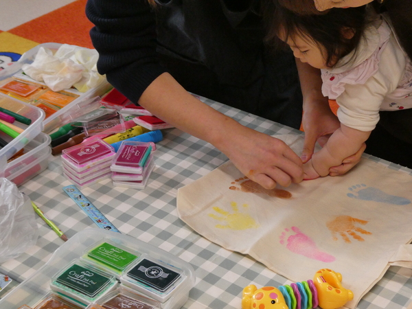 • 楽しく会話をしながら手形✋足型👣アートでバッグ作り💕